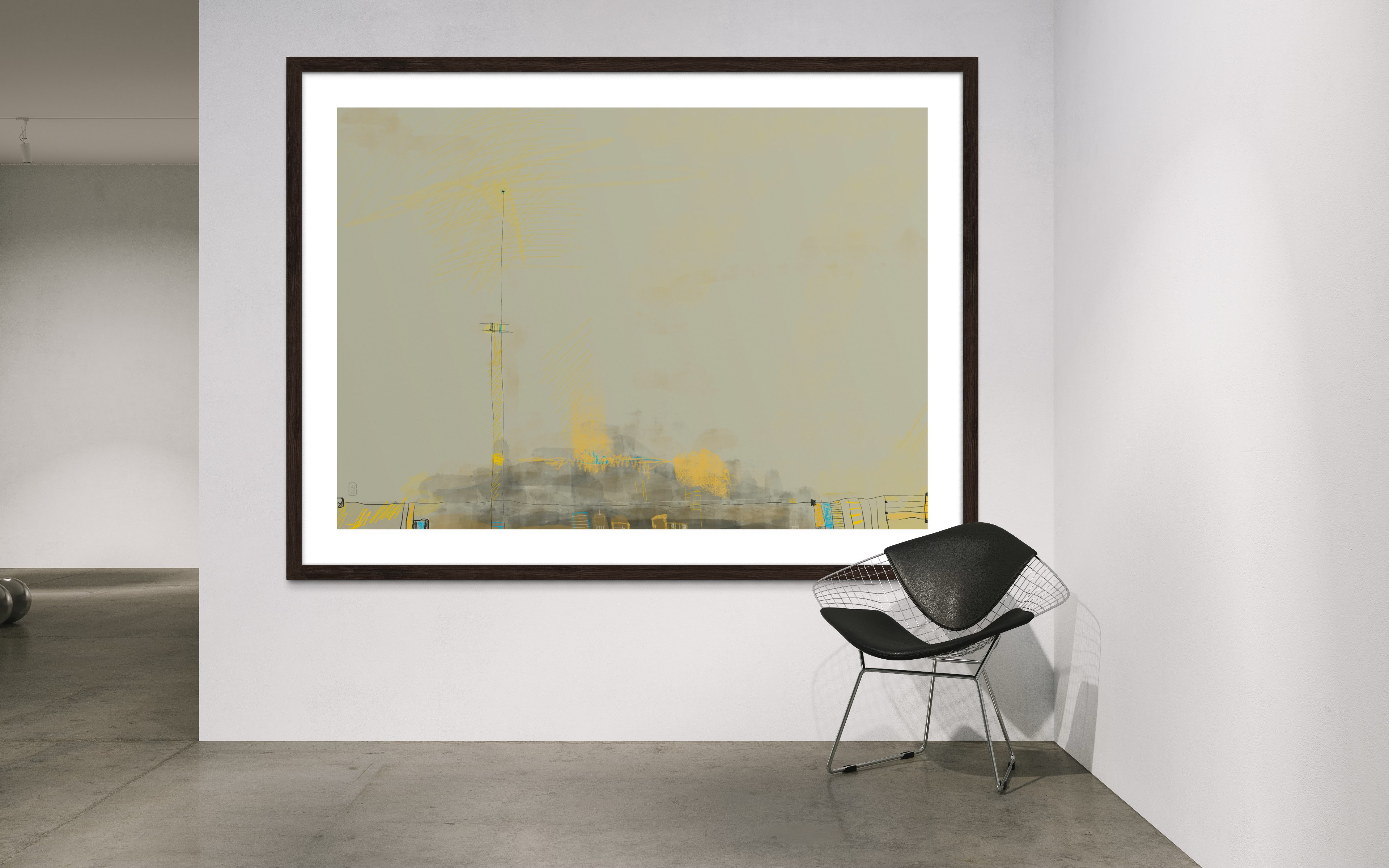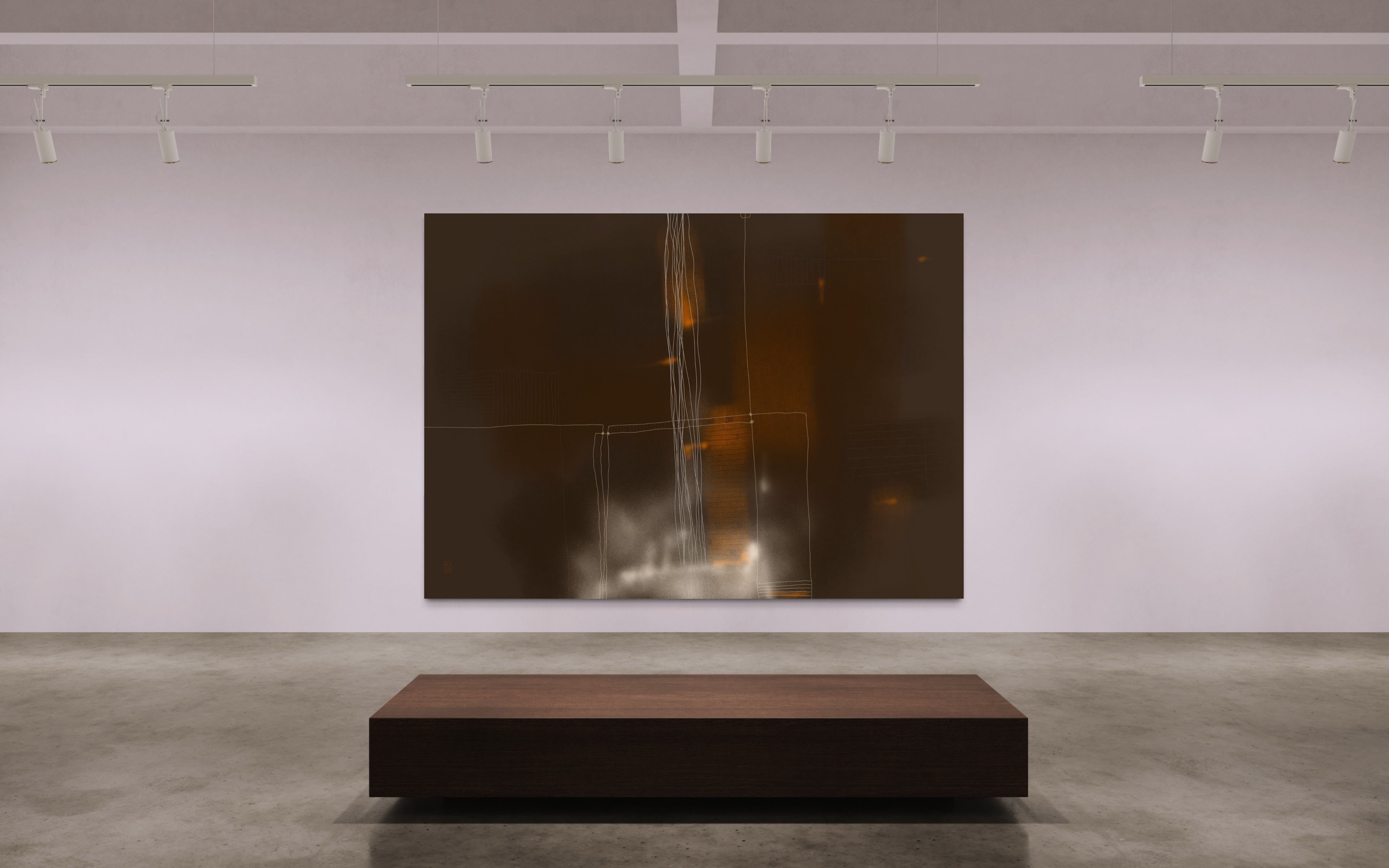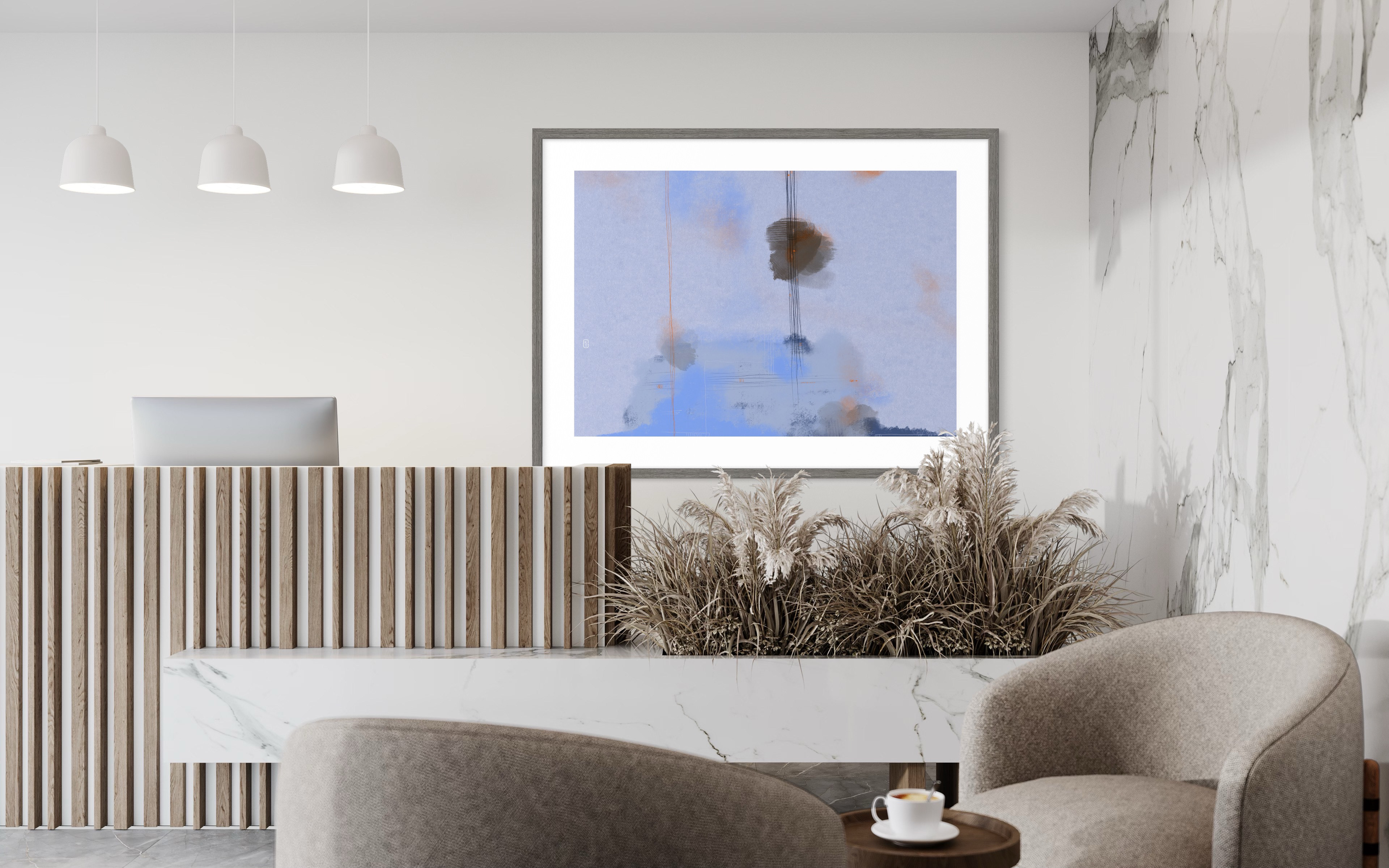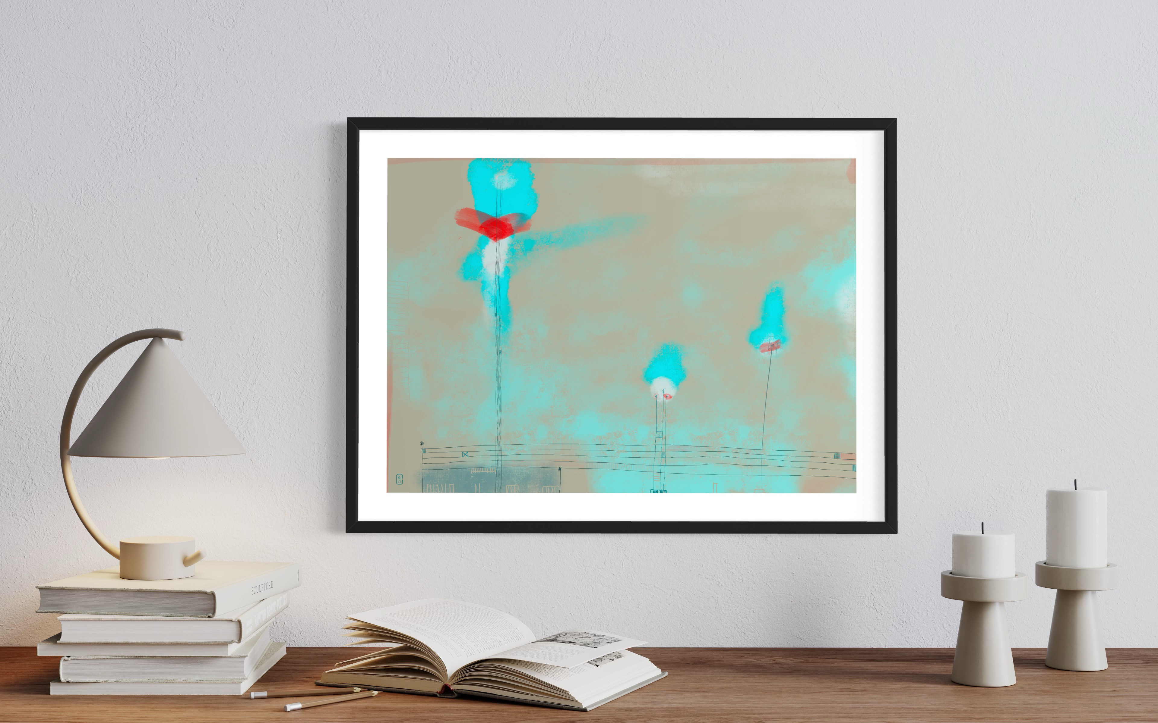 Across the digital canvas, simple, expansive forms anchor the composition, juxtaposed with the visceral energy of heavy brush marks and delicate, almost whispering thin lines. A dreamlike palette of soft pastels dominates, allowing hues to melt and blend, evoking a tranquil, contemplative atmosphere that plays out the majority of each composition.