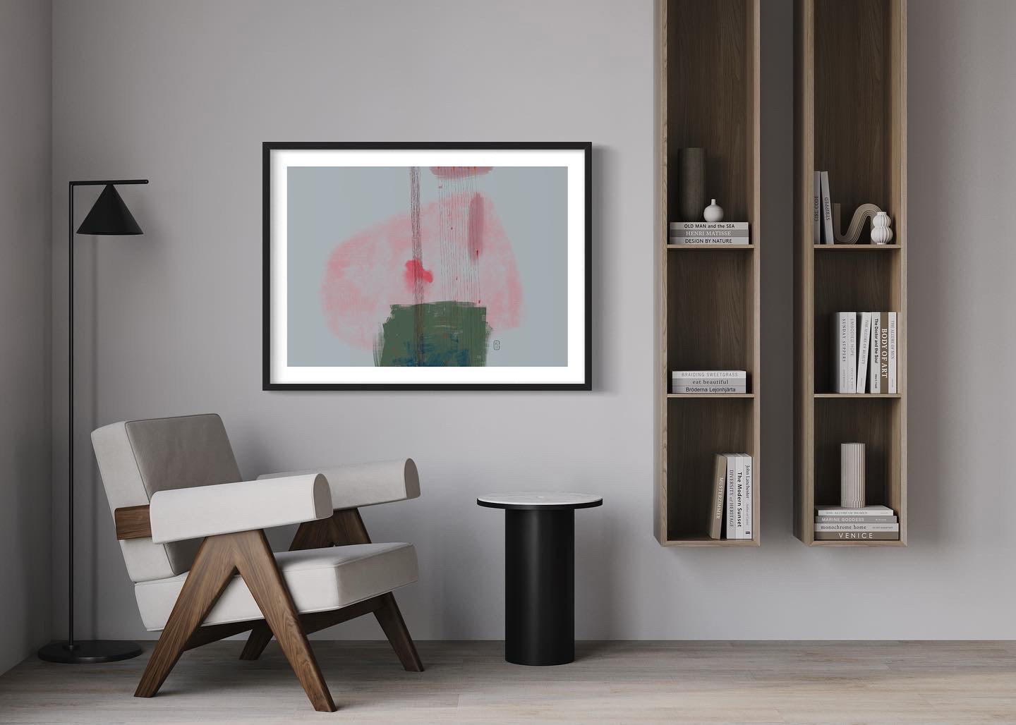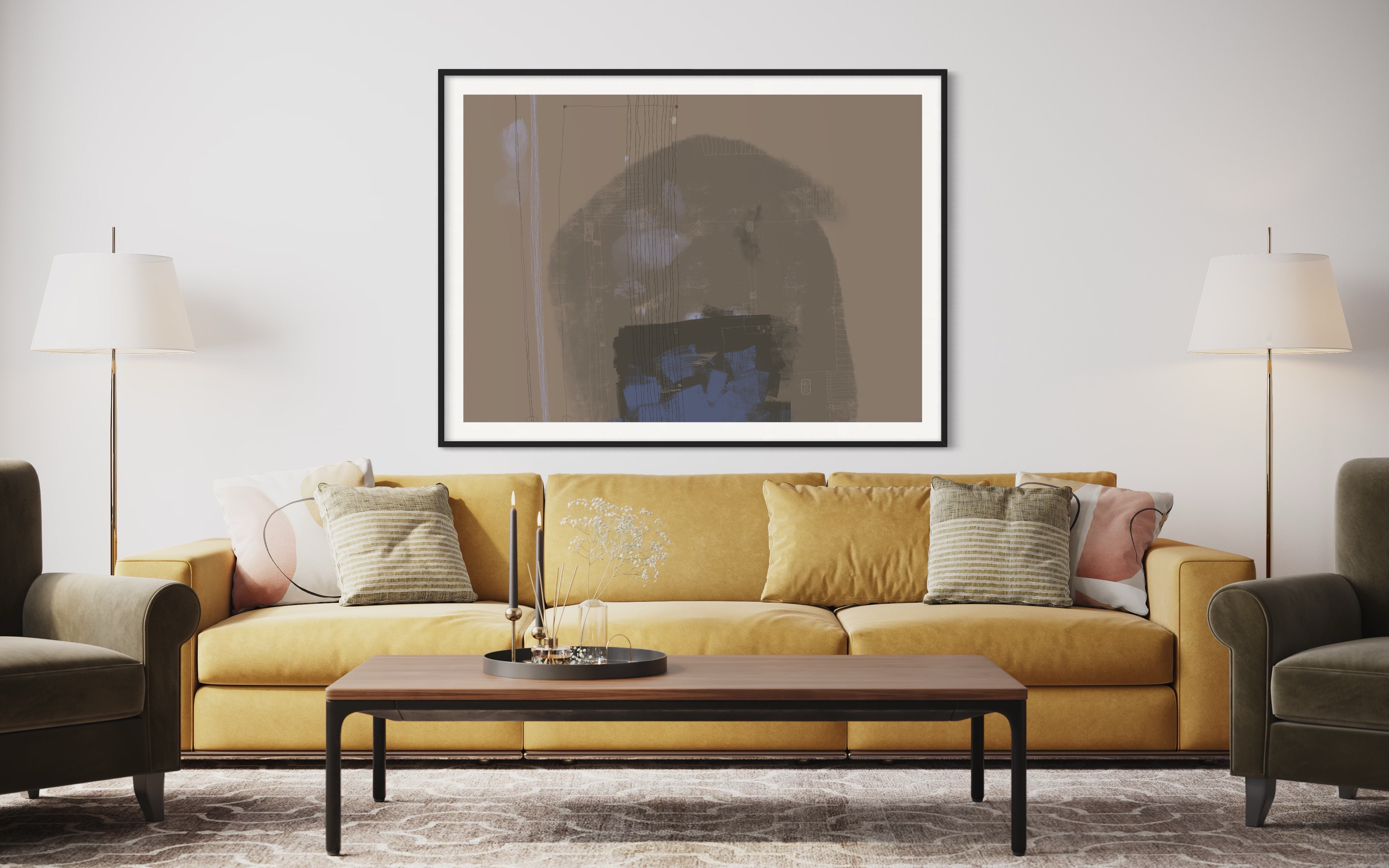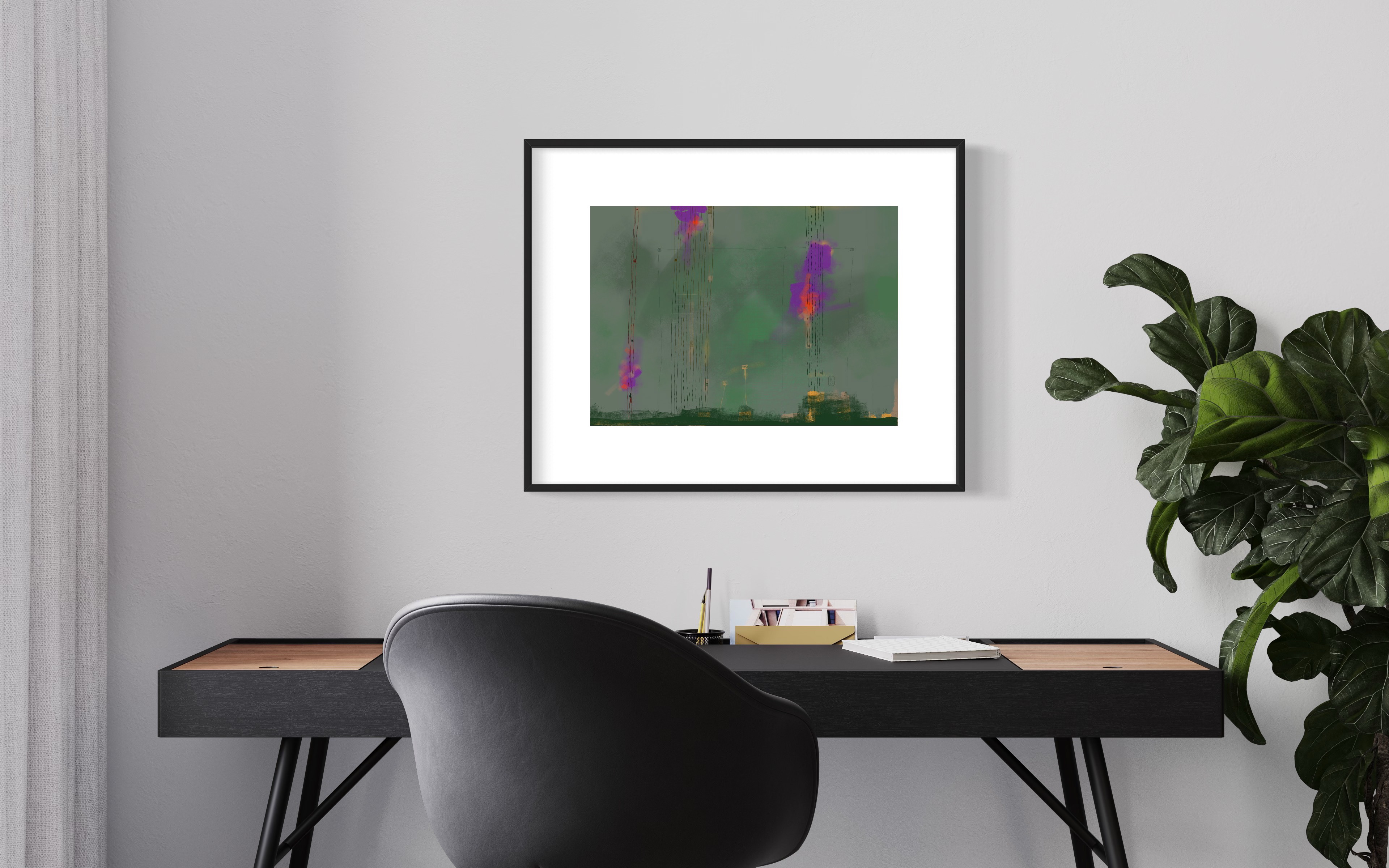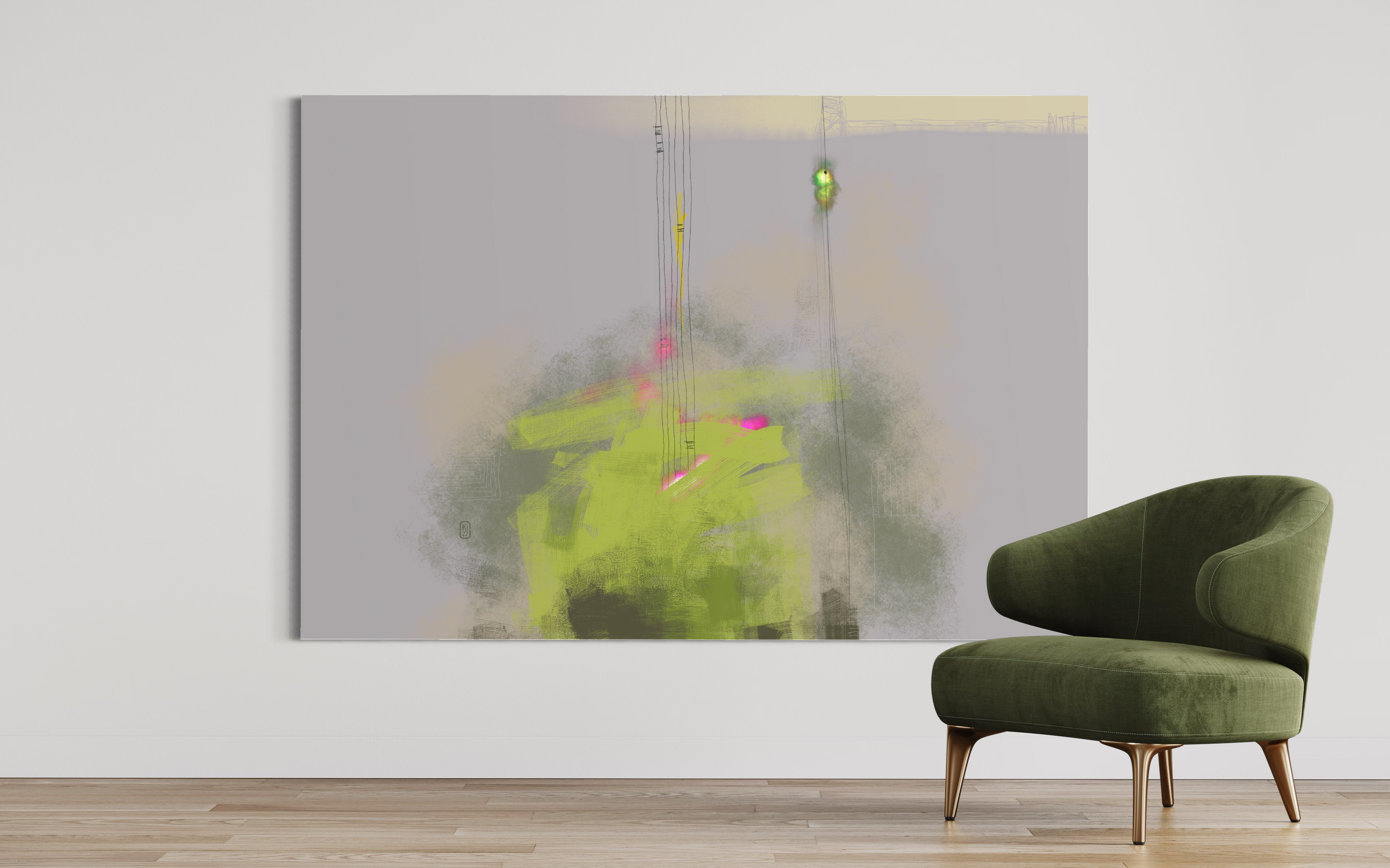 Across the digital canvas, simple, expansive forms anchor the composition, juxtaposed with the visceral energy of heavy brush marks and delicate, almost whispering thin lines. A dreamlike palette of soft pastels dominates, allowing hues to melt and blend, evoking a tranquil, contemplative atmosphere that plays out the majority of each composition.